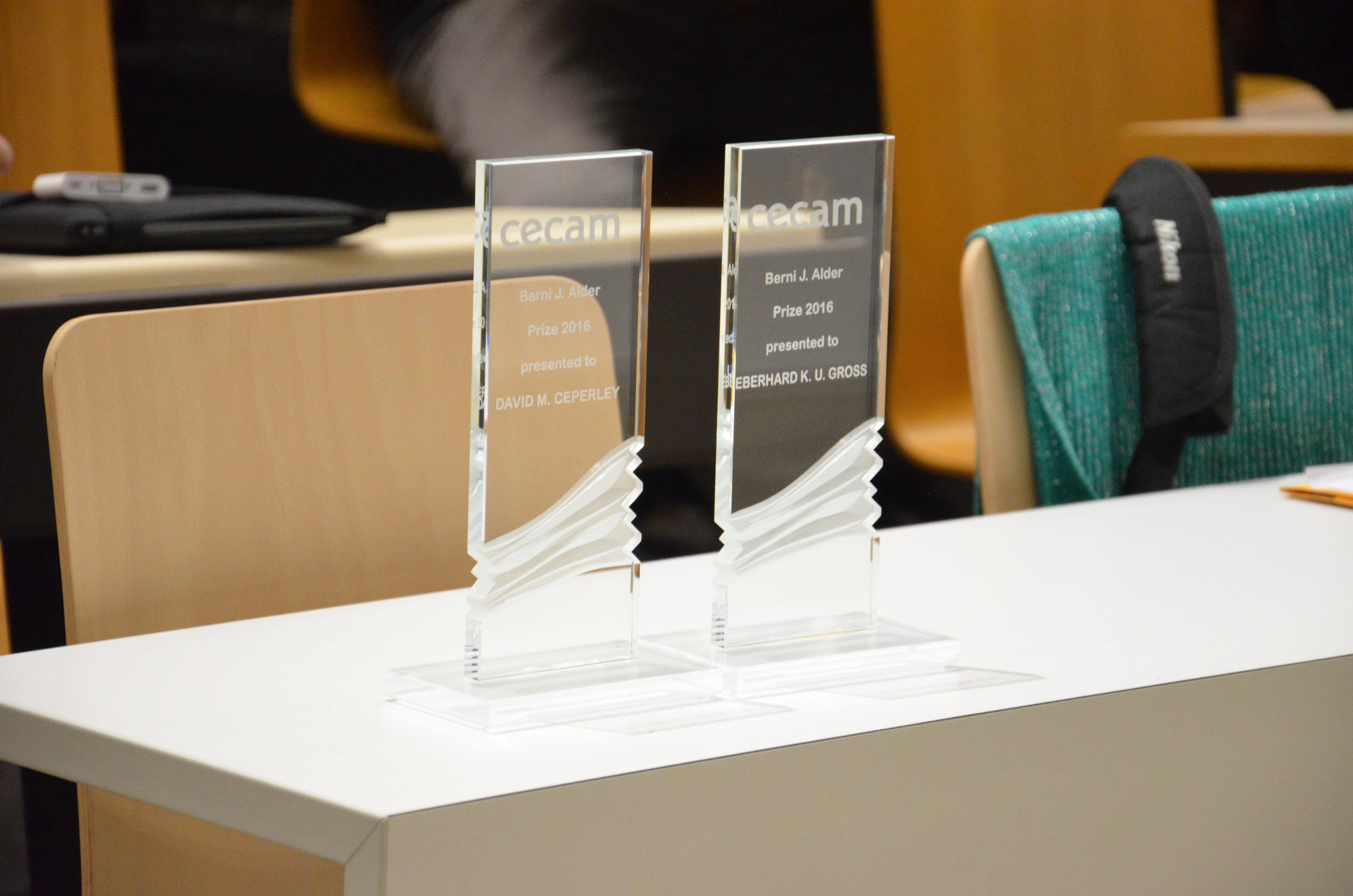 The Berni J. Alder CECAM Prize for 2016 will be jointly awarded to Professor David M Ceperley, Department of Physics, University of Illinois at Urbana-Champaign and to Professor Hardy Gross, Director of the Max Planck Institute of Microstructure Physics, Halle on November 23 2016, EPFL, Lausanne, Switzerland.